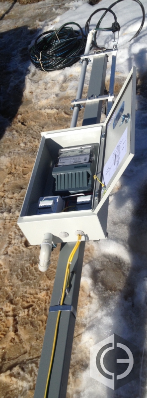 На фотографии трубостойка для ввода электричества на земельный участок.