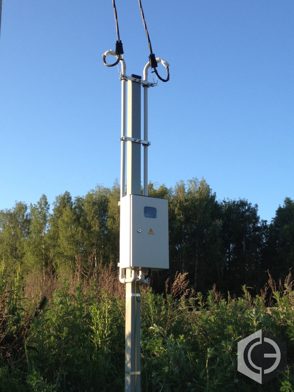 Электромонтажная фирма ООО СПЕЦЭЛЕКТРОЩИТ делает подключение участков к электрическим сетям МОЭСК в Солнечногорском районе. Электромонтажные работы любой сложности. Установка высоких трубостоек 7-8 м для протяжки сип кабеля через дорогу до границ участка.