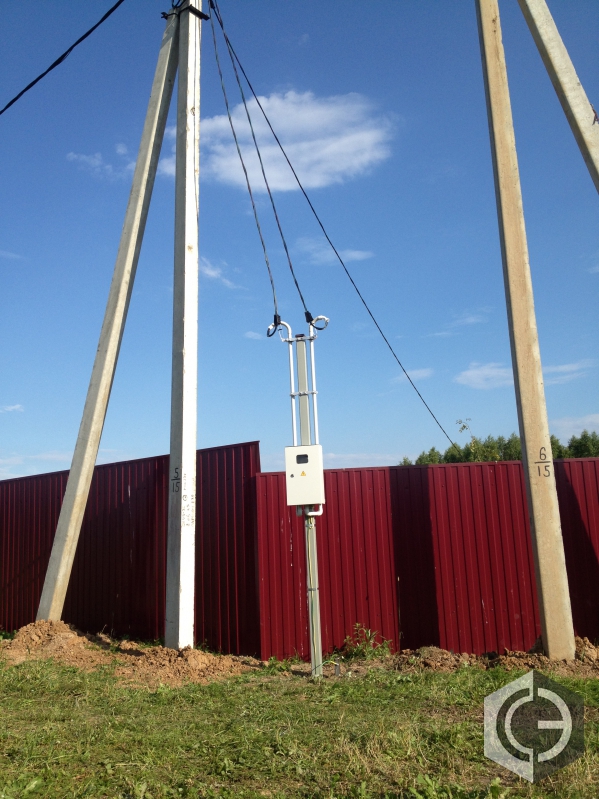 Труба стойка для подвода электричества 15 квт 380 в к дому в деревне Пикино.