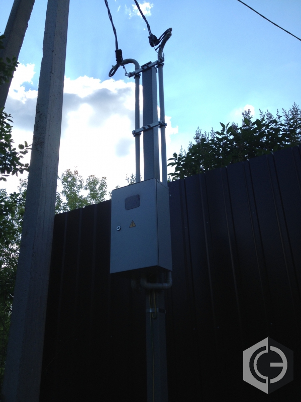Работы по подключению абонента к электричеству после выполнения работ МОЭСК Россети. Установка высоких трубостоек 7-8 м для протяжки сип кабеля. Электромонтажные работы по фасаду дома. Переборка щитов.