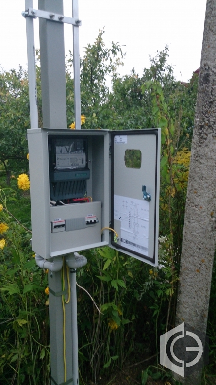 Подключение электричества к земельным участкам и домам в городе Яхрома делает фирма ООО СПЕЦЭЛЕКТРОЩИТ. ВРУ 15 квт 380 в на трубостойке.