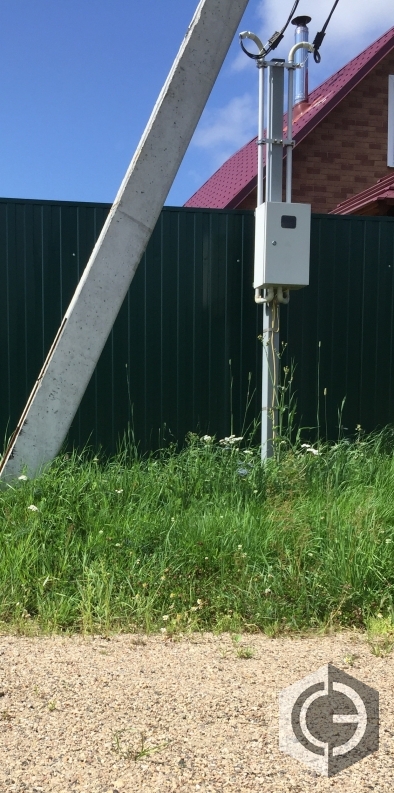 Работы по подключению абонента к электричеству после выполнения работ МОЭСК Россети. Установка высоких трубостоек 7-8 м для протяжки сип кабеля. Электромонтажные работы по фасаду дома. Переборка щитов.