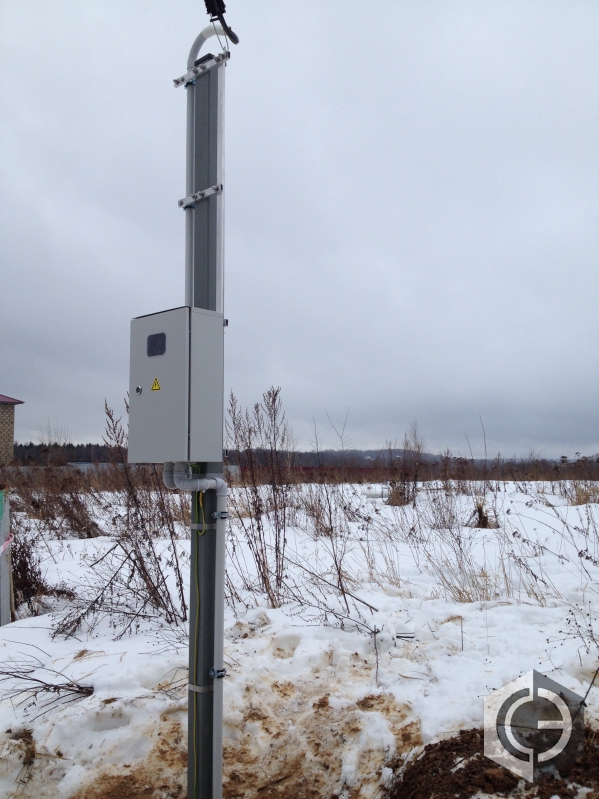 Установка щита учета на трубостойки под кабельное подключение. Заказывайте по телефону: 8(499)343-34-17.
